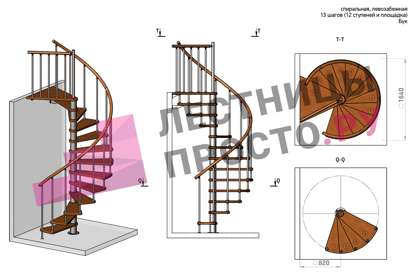 Винтовая лестница Prosto Spiral White D160см, h282.2-326,3 см, бук