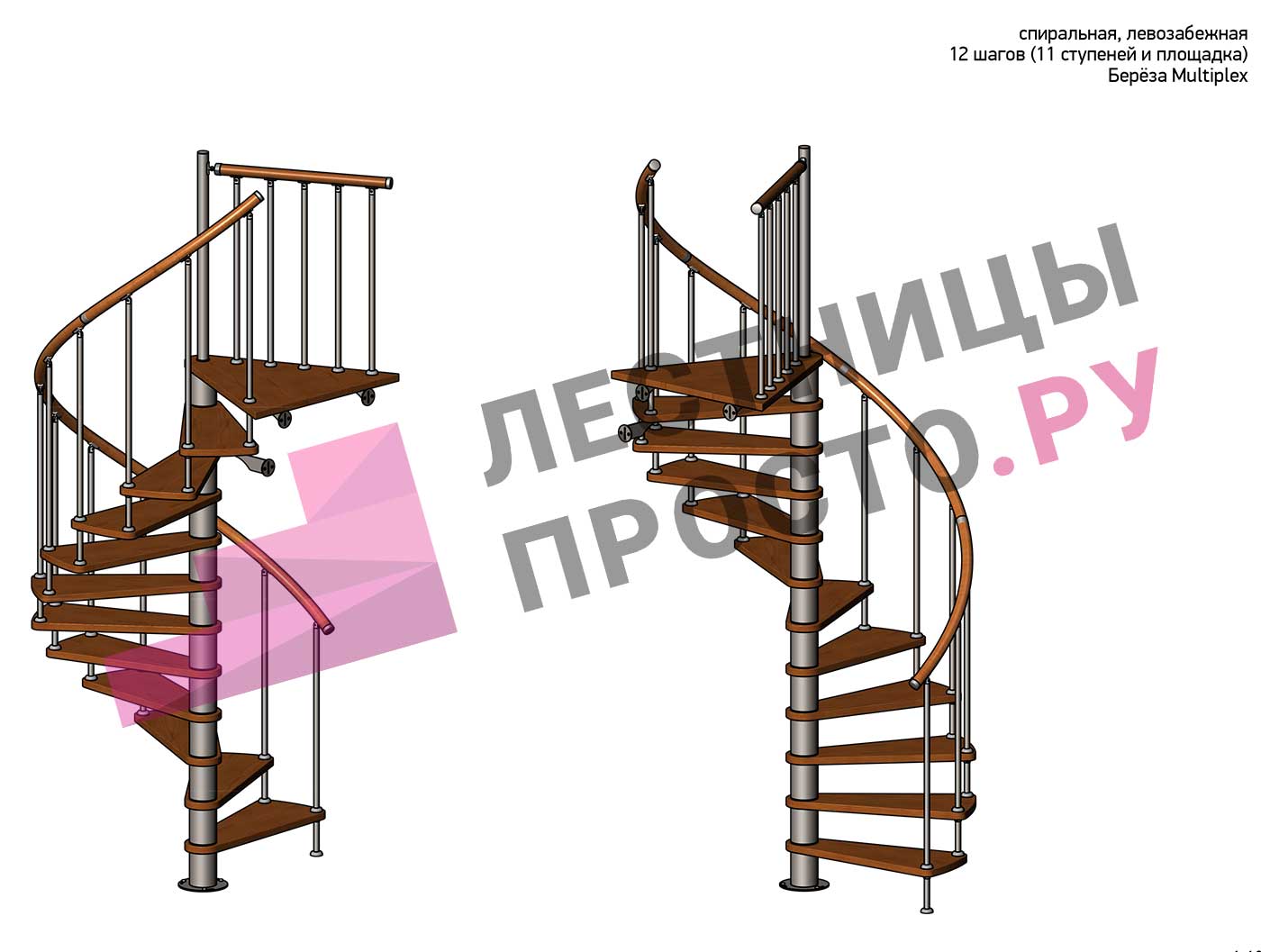 Винтовая лестница Prosto Spiral White D160см, h275.7-313.9 см