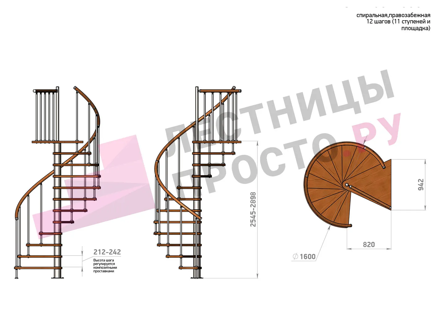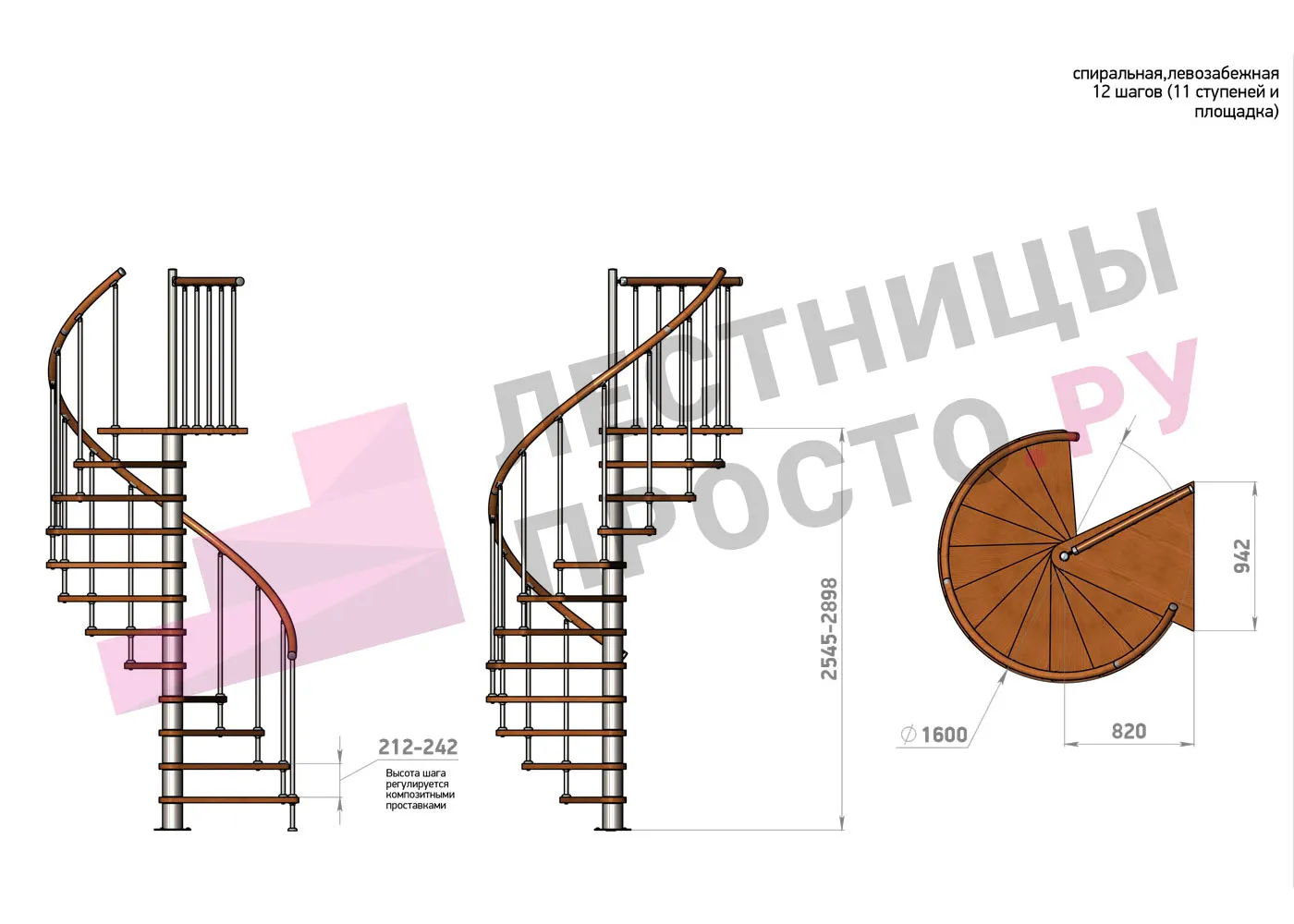 Винтовая лестница Prosto Spiral White/Высота 2545 - 2898 мм