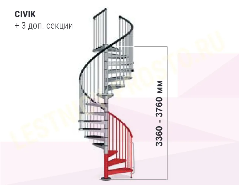Ступени лестницы покрыты специальными накладками из износостойкого антискользящего материала. Площадка лестницы имеет универсальную форму, позволяющую встраивать лестницу в потолочные отверстия любой формы и размера. Высота лестницы (регулируется при установке): 2520 - 3050 мм. С помощью специальных дополнительных секций, высоту лестницы можно увеличить до 3760 мм. (Секции покупаются отдельно). Во время сборки, задаётся необходимое направление поворота лестницы. Материал каркаса: прессованная пластифицированная сталь