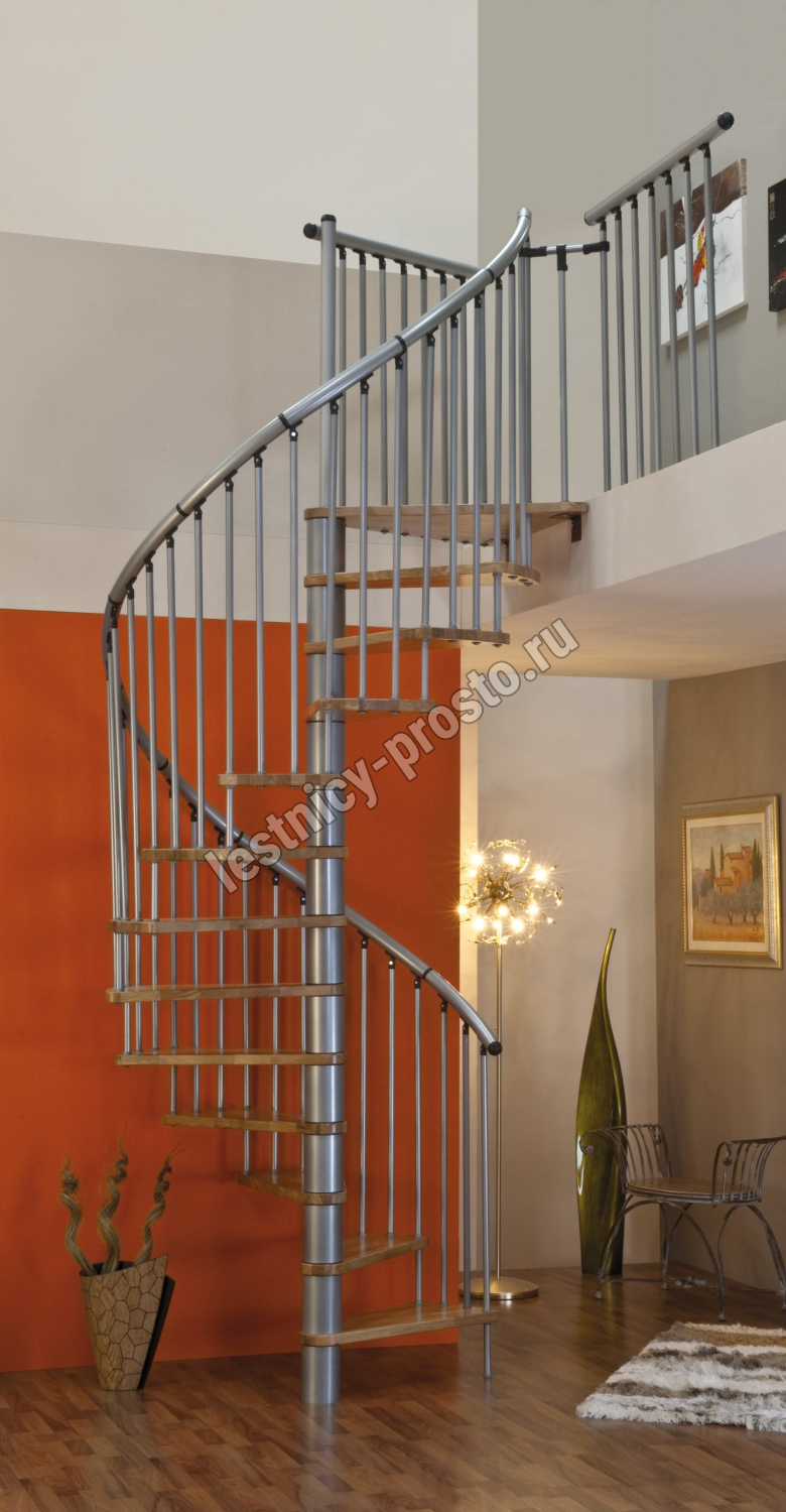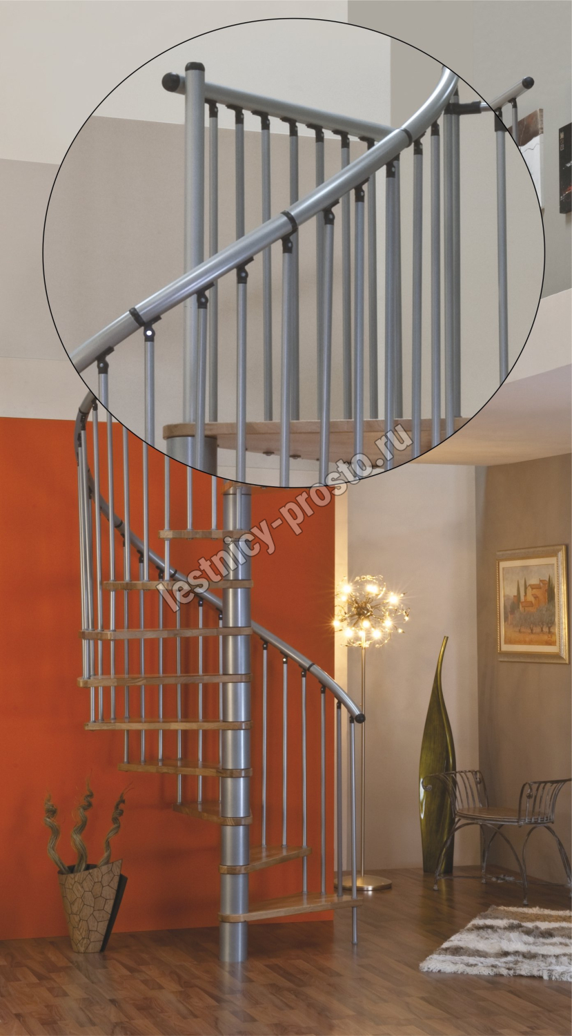Винтовая лестница SPIRAL EFFECT d160 см, серебро, бук лакированный