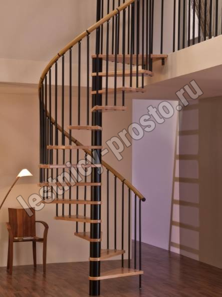 Лестница представлена в двух вариантах: с поворотом направо и с поворотом налево. Благодаря возможности регулировать высоту шага с помощью пластиковых вставок (входят в базовый комплект), высоту лестницы можно варьировать в пределах от 2860 до 3090 мм. Кроме того, купив дополнительную секцию для этой лестницы, можно поднять высоту до 3320 мм. Поручень изготовлен из массива бука в тон ступеням. Ступени и поручень покрыты износостойким защитным лаком.